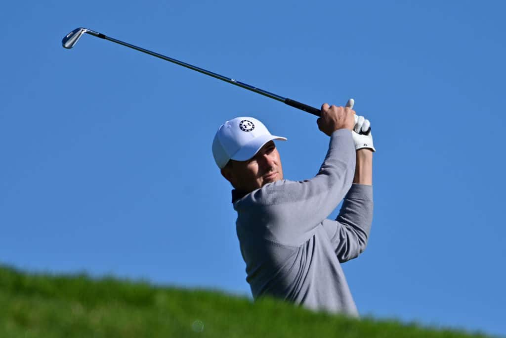 LA JOLLA, CALIFORNIA – JANUARY 26: Jordan Spieth hits his tee shot on the 15th hole during the first round of The Farmers Insurance Open on the North Course at Torrey Pines Golf Course on January 26, 2022 in La Jolla, California. (Photo by Donald Miralle/Getty Images)